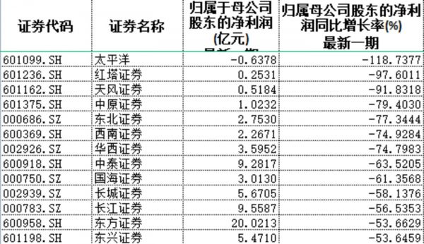 A股41家上市券商三季报“窘境”:归母净利润近乎全线“尽墨” ,中泰、红塔等13股“腰斩”,太平洋亏损|看财报