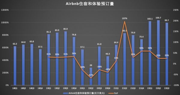 房屋出租预订总额的高低,与住宿和体验的预订量以及间夜单平均单价有很大关系。财报显示,截至9月的三个月里,爱彼迎住宿和体验的预订量为9970万晚,同比增长25%,与2019年同期相比,增长16%。