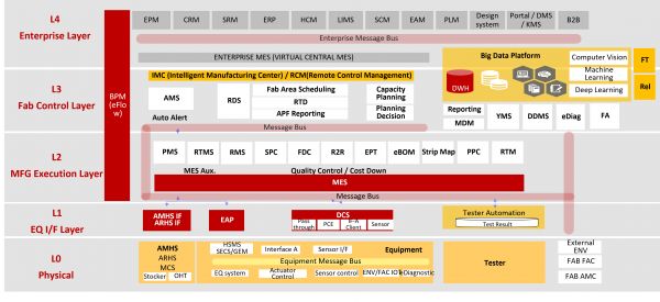 计算机集成制造系统CIM是半导体制造的生命级系统,由生产执行系统MES、装备控制平台EAP、良率分析控制系统YMS、FAB实时调度排产系统RTS等数十种软件系统组成,可以完成从信息收集、分析、决策,到二次分析、大数据model预测性分析到给出决策意见的全流程软件支持。