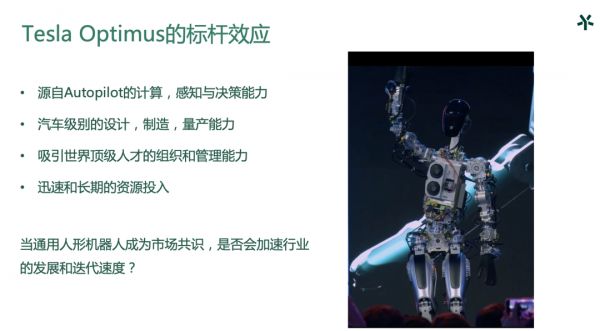 特斯拉在9月30日发布了人形机器人Optimus,有很强的标杆效应。特斯拉是一个真正具有庞大的车规级的量产能力、供应链能力和算法能力的公司,也有源源不断的资源的投入。在这样的前提下,人形机器人市场可能会更快形成共识,我们也看到很多公司正在进入这个市场,在以不同的方式进行迭代和尝试。我们正好借这样一个机会,邀请大家一起来加入讨论。