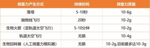 一般来说,微重力效应会在几个场景中诞生。一是落塔,世界各国都有建造产生微重力效应的落塔,我国北京海淀区也有一座高40米的落塔;二是抛物线飞行,能够产生20秒的微重力效应。这两种方式微重力效应持续时间短,难以展开生物学微重力试验。
