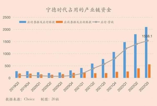 宁德时代 Q3 的应付票据及应付账款创纪录地达到了 2100 亿,应收票据及营收账款也上升到了 561.9 亿,应付和应收差额达到了 1538.1 亿元。要知道,Q1 应付应收差额刚刚超过千亿,宁德时代的资金沉淀效应今年正急剧增加。用产业链的钱,办自己的事。