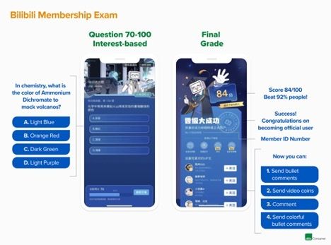 Bilibili 的会员测验还有一个额外的福利,那就是能够向平台的用户传授具体的参与规则,以培养一个健康和积极的社区。它通过在基于主题的问题来潜移默化地传递给用户有关成员和平台规则。示例社区问题包括: