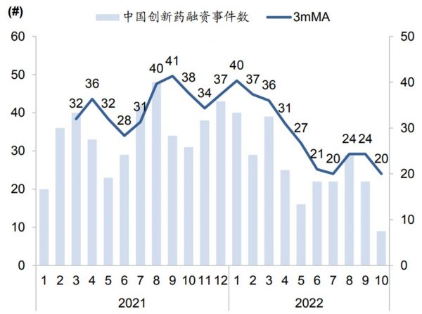 中国创新药板块的VC/PE投融资事件数 资料来源:动脉网、招商证券(香港);注:投融资事件数不包括未披露融资额的公司