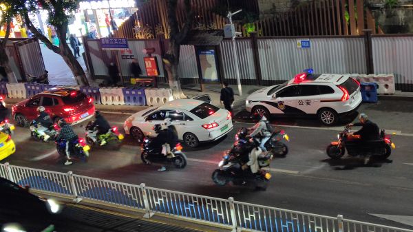 洪崖洞街边穿梭的摩托车