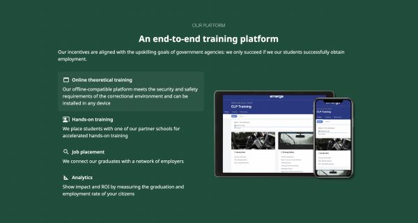 「Emerge Career」曾在8月份以Y Combinator项目之一的身份首次公开亮相。该团队曾在Ameelio任职,这家初创公司希望颠覆多年来监狱中常见的、被严重剥削的视频通话服务。在上一段工作经历中,两位创始人清楚地认识到了囚犯所面临的教育问题。