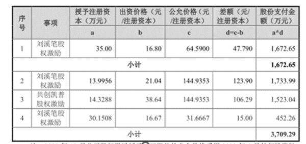 与此同时,招股说明书显示,报告期内,达利凯普存在4次股权激励,其中3次是向刘溪笔、1次是向共创凯普发起。