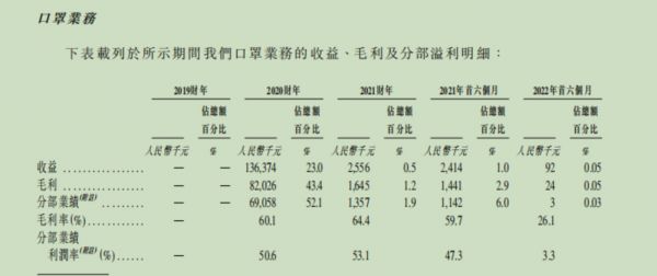 据招股书显示,2020年佳捷康口罩业务的毛利率高达60.1%,在其所有产品中最高,当期该业务的利润率为50.6%。到了今年上半年,佳捷康口罩业务的毛利率为26.1%,利润率仅剩3.3%。