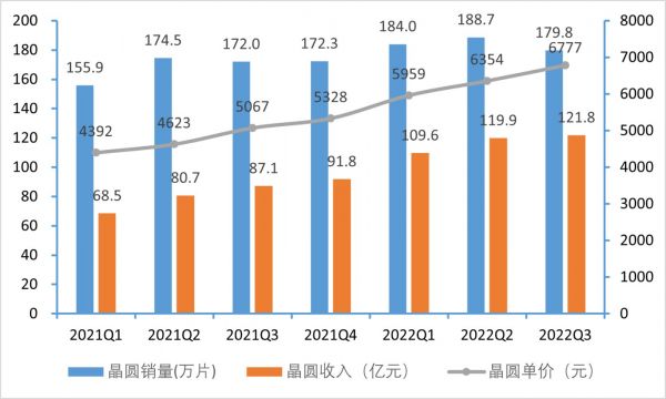 公司晶圆产品按尺寸分为8英寸和12英寸产品,将12英寸晶圆折算成8英寸晶圆来计算,三季度公司销售晶圆179.7万片,较二季度188.6万片的销量环比下降4.7%。