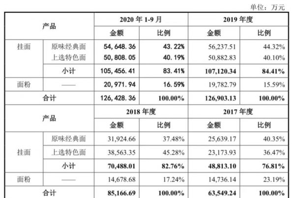 从濒临破产的工厂,到光彩夺目的公司,想念花了20年时间。现在,根据招股书显示,公司主营业务为挂面、面粉产品的研发、生产和销售,主要产品为挂面及面粉。目前,已打造“想念”、“康面”、“宛康面”、“优面”等多个品牌的产品线,推向市场近400款挂面产品。