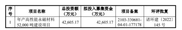 11月 18日,安特磁材披露了招股书,公司现有永磁铁氧体材料产能12万吨/年,拟募资4.26亿元,用于年产高性能永磁材料。该项目建设周期3年,项目建设并达成后,公司将新增5.2万吨/年的高性能永磁材料生产能力。