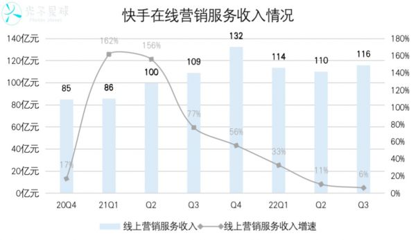 商业化受行业影响,第三季度,快手在线营销服务收入为116亿元,同比增长6.3%,增速创下新低,延续了此前低迷不振的增长。单看数据,刘峰任上确实没有改变此前增长失速的局面。