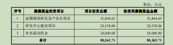 据招股书显示,此番上市,盛景微拟募集资金约8.04亿元,用于延期模块研发及产业化项目、研发中心建设项目、补充流动资金。其中2.4亿元用于补充流动资金,占拟募资额的比例在三成左右。