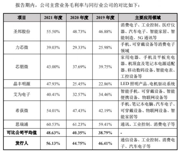 对此,钰泰股份在首轮回复中称,公司取得较高毛利率主要系产品结构、下游应用领域等方面与可比公司存在一定差异,公司在工业控制领域具有较深厚的积累,公司取得较高的毛利率具有合理性。