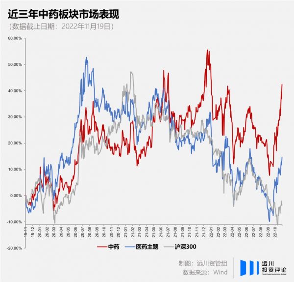 后续政策密集出台:中医医疗机构可暂不实行按疾病诊断相关分组付费;中医院和中药零售药店纳入医保顶点;中药饮片加成仍保持了长期以来不变的比例(25%)[1]。正如财通医药鑫选基金经理张胤所评论的,“2022年医保端、审评端等对现代中药有着明显的倾斜[3]。”