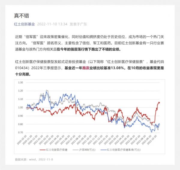 直到四季度武大生物学背景的廖星昊加入,基金才逐渐走上正轨——押中药,集中度也日趋提升。由于发起式基金合同生效3年后,规模仍低于2亿元则会被强制清盘,眼看距离明年清盘越来越近,在重仓中药后基金规模从长期1000多万飙升至2022年一季度的7000多万。因为近期业绩爆表,红土创新基金官微甚至直接发文:真不错!