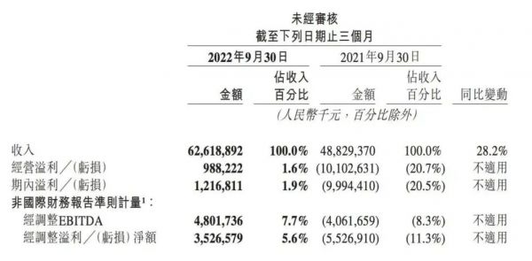 截止到2022年9月30日止的三个月内,美团营收达626.19亿元,同比增长28.2%,增幅创2022年以来新高,却不及上年最低的31%;经营利润达到9.88亿元,上年同期亏损101.03亿元;期内利润达12.17亿元,上年同期亏损99.94亿元,实现扭亏为盈。