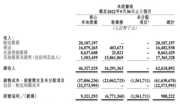▲图:美团2022年三季度核心业绩表现