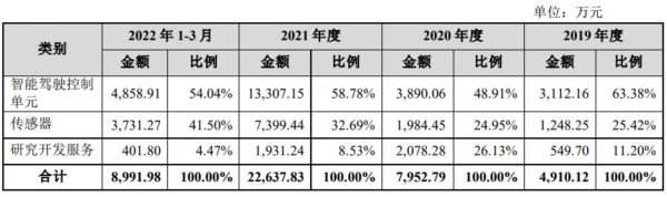 按产品分类,纵目科技的营收来源主要来自智能驾驶控制单元和传感器两类硬件业务。2019年、2020年、2021年,纵目科技智能驾驶控制单元和传感器产品业务营收快速增长,2021年智能驾驶控制单元营收同比增长242%。