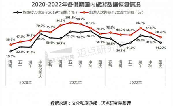 随着国庆长假的落幕,2022年全部法定节假日结束,客观的数字显示:出游人次及行业收入创下疫后同期新低。经文化和旅游部数据中心测算,2022年国庆节假期7天,全国国内旅游出游4.22亿人次,同比减少18.2%,按可比口径恢复至2019年同期的60.7%。实现国内旅游收入2872.1亿元,同比减少26.2%,恢复至2019年同期的44.2%。这份成绩单出乎意料又在情理之中,受区域性点状疫情多发的影响,各地大面积倡导居民“就地过节”,景区则因疫情防控需要实行闭园。可见,疫情仍将是当前和今后一个时期影响旅游行业复苏的最大不确定性因素,未来旅游行业恢复的进程依然取决于“出行政策”的弹性调整与人员合理流动。
