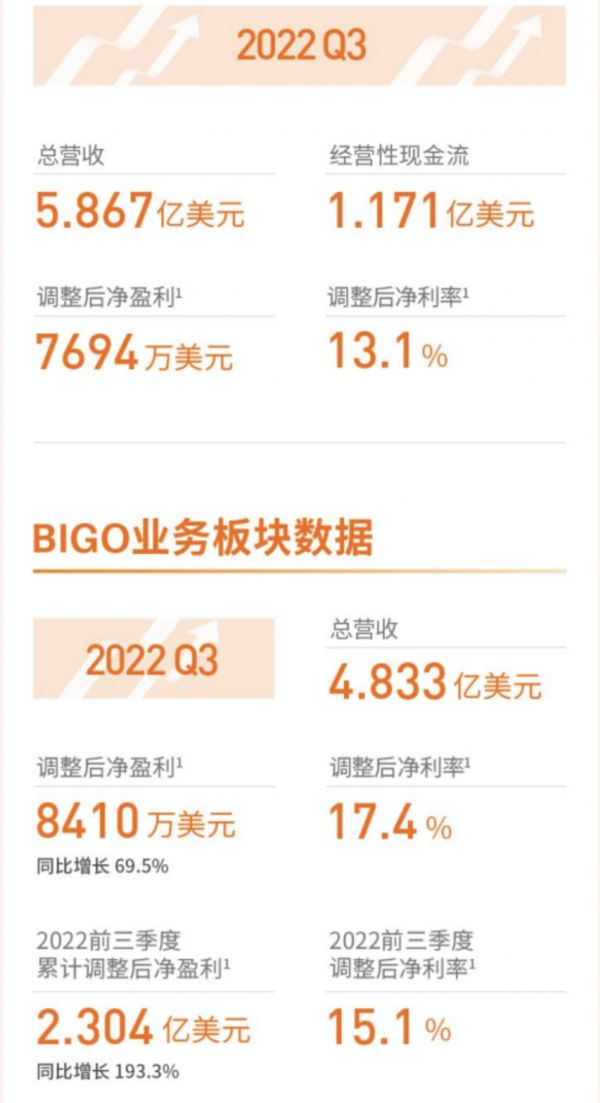 除了 MAU,由 Likee、Bigo Live 和 imo 构成的 BIGO 业务线付费用户为 151 万,较上个季度增加 6万。ARPPU 为 259.8 美元,同比下降 15.6%,环比下降 8.8%。