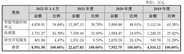 收入按产品分为智能驾驶控制单元、传感器和研究开发服务。其中,智能驾驶控制单元就是泊车功能的控制器内含公司自研的AI及算法;传感器主要是摄像头、超声波传感器、毫米波雷达。