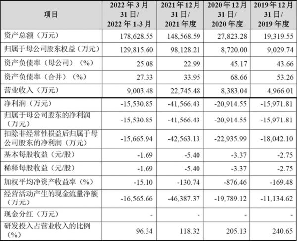 据招股书显示,2019-2021三年间,纵目科技的研发投入分别约为1.20亿元、1.72亿元和 2.70亿元。营业收入分别为4966.01万元、8383.04万元、2.27亿元和9003.48万元。对应亏损,2019年至2022年一季度分别亏损约1.60亿元、2.10亿元及4.16亿元和1.55亿元。