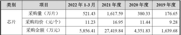 虽说从2021年到现在,行业上确实出现了“缺芯潮”,但这样的解释显然不靠谱。根据采购情况显示,2021年芯片平均采购价相比去年上涨了48%,这导致公司整体毛利率下降了3.22个点。但2022Q1芯片价格回落到2020年全年平均水平之后,公司的毛利率依然不增反降。