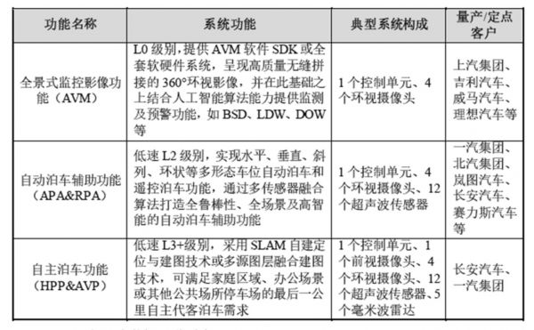 纵目科技的主营业务,用一句话概括就是做汽车泊车的。产品分类别包括全景式监控摄像功能、自动泊车辅助功能、自主泊车功能;分别对应车载全景“倒车雷达”、车内自动泊车,以及车外遥控泊车三个场景。