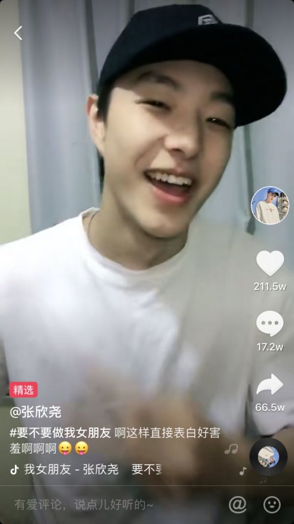 拍摄完广告张欣尧就留到了北京。故事转折点发生在2017年7月,他上传了一条名为《要不要做我女朋友》的作品,视频中他配合着背景音做手势和表情。
