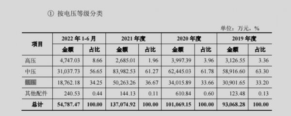 据招股书显示,2019年-2021年和2022年上半年,亘古电缆电力电缆业务占比分别达74.46%、83.03%、85.63%和 75.73%,为公司第一大业务。在电力电缆业务中,除2022年上半年外,其余报告期内中、低压电缆贡献的收入占比均超95%。尽管今年上半年高压电缆业务收入占比提升至8.66%,暂时难以扛起营收大旗。