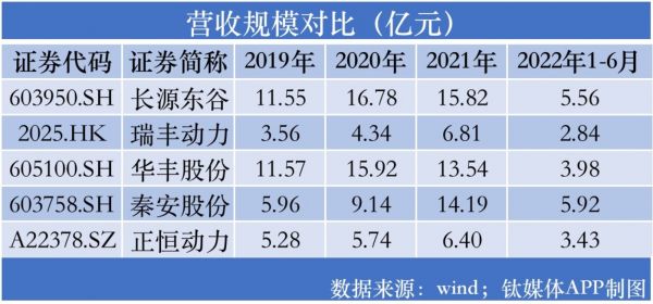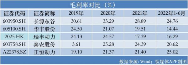 数据来看,2019年-2021年、2022年H1,公司毛利率分别为19.10%、21.37%、21.40%和25.02%,逐年递增;而同行长源东谷则为30.61%、33.29%、28.89%、24.76%,华丰股份为24.50%、21.07%、19.51%、14.44%,瑞丰动力为24.13%、24.57%、17.39%、16.29%,秦安股份为3.61%、25.28%、24.39%、20.62%,均呈下滑态势。