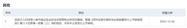排队三个月后,网进科技的IPO意外“中止”。对于中止的原因,深交所官网显示,因网进科技的保荐人被中国证监会依法采取限制业务活动措施,根据《深圳证券交易所创业板股票发行上市审核规则》第六十四条第一款第(三)项的规定,中止其发行上市审核。