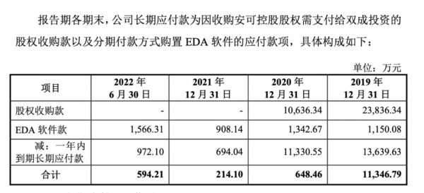 印度奥拉主要从事时钟芯片、电源管理芯片的研发工作。奥拉股份的招股书中并未言明上述收购的具体金额,但有提到“公司长期应付款为因收购安可控股股权需支付给双成投资的股权收购款以及分期付款方式购置EDA软件的应付款项。”
