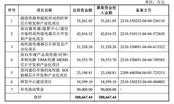 奥拉股份所募集资金扣除发行费用后,5.46亿元用于面向车规产品高性能/时钟/多相电源VRM/传感MEMS芯片开发和产业化项目,4.20亿元用于面向服务器/超算中心/通信市场的高性能电源芯片开发和产业化项目,3.53亿元用于超高性能和超低抖动的时钟芯片研发和产业化项目等。