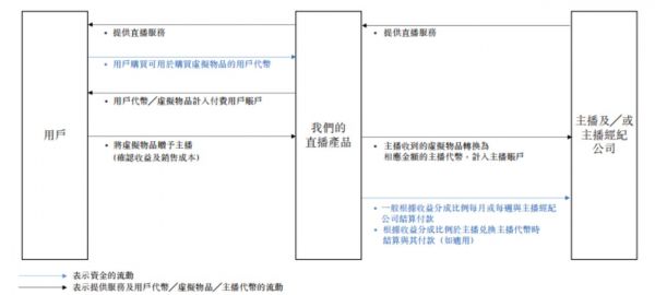 直播业务收入主要来自用户的打赏。根据招股书显示,对于主播收到的虚拟物品产生的收益,花房集团与主播及其相关主播经纪公司进行分成。各虚拟物品相当于若干金额的主播代币,有关代币可按预先厘定的比例兑换为现金。当主播收到虚拟物品时,平台会自动将虚拟物品转换为相应金额的主播代币,主播代币将计入主播的账户,并可根据平台、主播及其相关主播经纪公司之间的收益分成安排兑换为人民币。