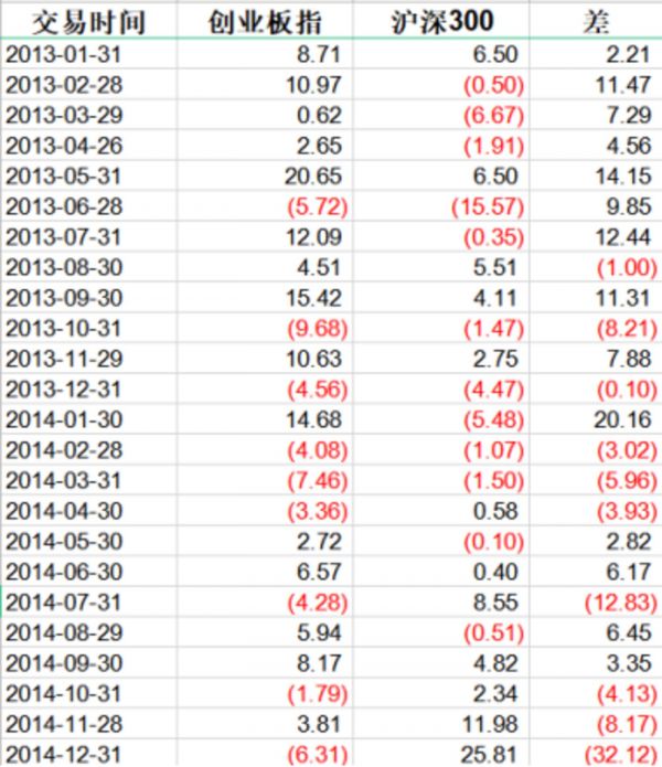 可真正令人瞠目结舌的变化发生在四季度,第四季度沪深300暴涨44%,创业板则下跌 -4.9%,特别是最后一个月,沪深300竟然获得了32个点的超额收益。