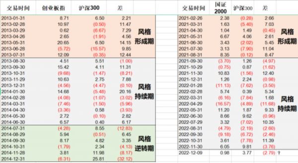 比较了21-22年与13-14年的异同后,想要判断现在是否到了风格逆转点,还需要从微观的角度,看一看这两轮风格极端分化的过程与节奏。