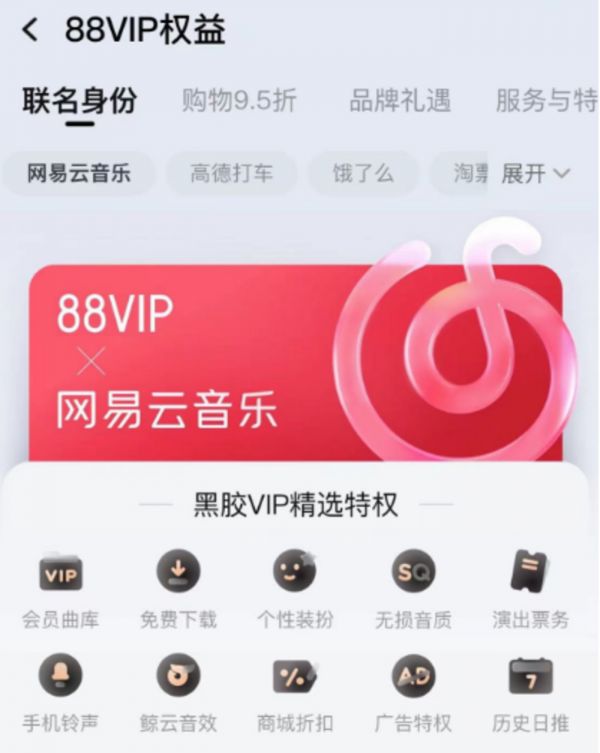 黑胶SVIP会员的出现基本是必然的,网易云音乐的黑胶会员虽然增速喜人,但是其中大部分新增用户来源于淘宝的88VIP会员,只需要88元即可获得包括网易云音乐黑胶会员在内的多个会员,而这部分营收带给网易云的收入显然是比传统黑胶会员要低很多。