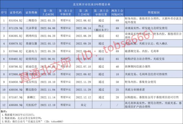 北交所开市至今累计有116家企业上会,已有12家企业在首次上会时遭暂缓审议。