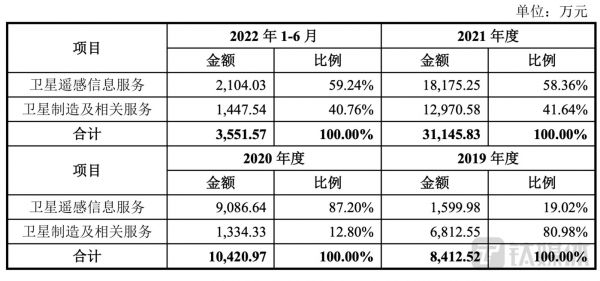 业务方面,长光卫星营收包含两大板块,2021年、2022年上半年,近六成收入来源于卫星遥感信息服务,四成收入则由卫星制造及相关服务业务贡献。