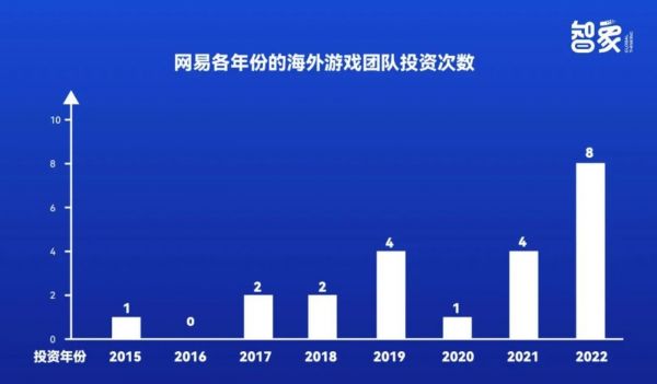 据不完全统计,从2015年投资芬兰的Reforged Studios开始,网易游戏已在海外市场中投资了至少21家与游戏业务相关的公司,共计投资至少23次。网易针对海外游戏团队的投资动作在2019年达到4次,而2021年和2022年则分别达到了4次和8次。(2020年的投资动作锐减可能与当时版号政策大幅放开和新冠疫情刚刚兴起抑制投资行为等方面有关,并不能客观反映网易海外投资的整体趋势变化。)