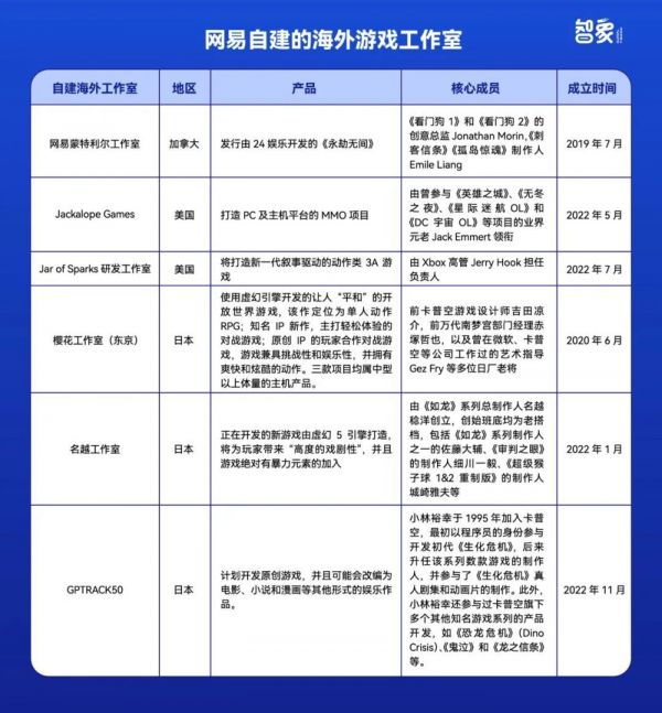 第三阶段为2019年至今,也正是从2019年开始,网易开始加快对海外游戏团队的投资,并自建了多家海外工作室。