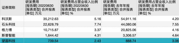 实际上,公司自有品牌销量较低与其在研发方面一直没有太多投入不无关系。目前随着行业技术的发展,泳池清洁机器人的智能化程度不断提升,人工智能与通信技术的快速发展推动了泳池清洁设备向着智能化、自动化方向迭代。市场已经对企业的研发、创新提出了新的要求。但反观望圆科技的研发投入却远不及同行,研发费用率也低于同行业平均水平。报告期内公司的研发费用分别为324.19万元、468.93万元、888.74万元及739.54万元,研发费用率分别为5.58%、3.58%、3.06%和2.42%。