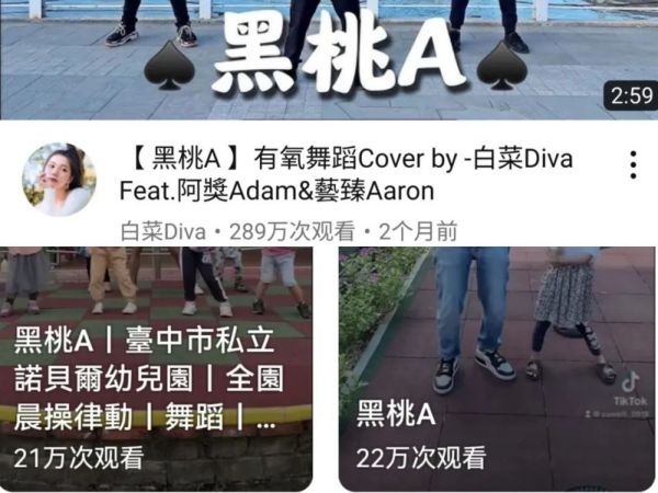 不仅如此,TikTok、YouTube Shorts等平台上,台湾地区网友还发起《黑桃A》相关舞蹈挑战、健康操带动海外用户参与,此前台湾博主“白菜Diva”所编《黑桃A》有氧操在Youtube仅两个月便收到289万播放。在YouTube Shorts上,台湾素人网友发起的《黑桃A》相关舞蹈视频均能达到约20万次播放;而在台湾网友的有效输出下,TikTok上也相应出现了海外网友效仿舞蹈整活儿,比如一群非洲小哥大跳《黑桃A》的短片在TikTok上也收获了超过3万点赞,甚至引流了不少用户到Spotify收听该歌曲。