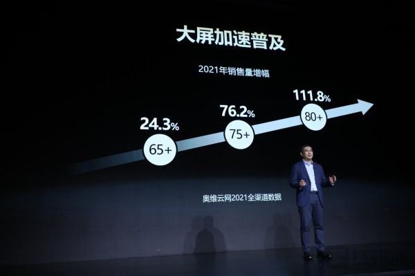 不仅如此,各个厂商也在不断完善自身的大尺寸产品布局,根据钛媒体App的观察,目前主流电视品牌都已经完成了75~98英寸产品的全面覆盖,甚至很多厂商都已经将目光投向100英寸甚至更大尺寸的电视产品。根据奥维云网的预测数据,2022年国内彩电平均尺寸也将首次达到55英寸以上。