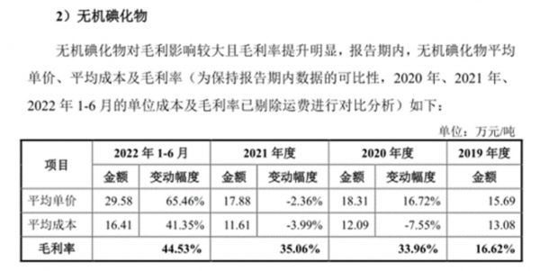 与此同时,报告期内,无机碘化物的毛利率分别为16.62%、33.96%、35.06%、44.53%。换言之,博苑股份的毛利率之所以暴增也离不开无极碘化物的贡献,从而才能实现利润3年暴增10倍的“神话”。