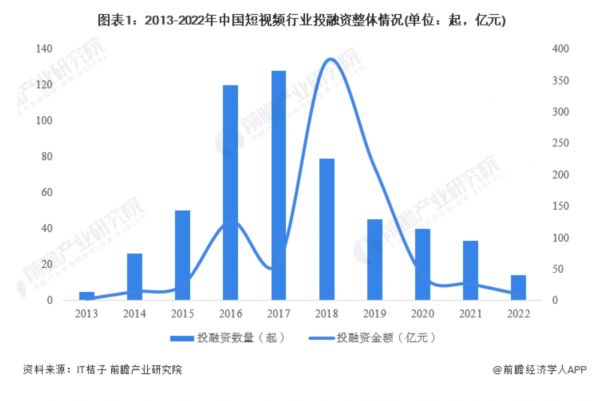 IT桔子统计的数据显示,截止2022年11月底,短视频行业全年仅完成14起投融资事件,公开披露的融资总金额约为10.16亿元。作为对比,在一级市场最活跃的2017年,短视频行业共完成了128起投融资,2018年合计380亿的投融资总额也创下历史纪录。