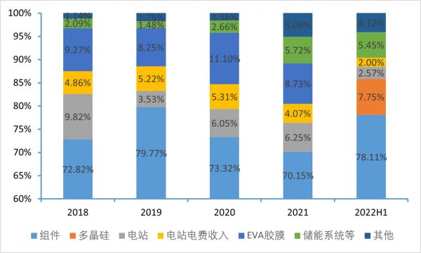 东方日升成立于2002年,是国内最早进入光伏领域的企业之一,2006年开始布局电池片和组件业务,此后公司将产业链向下延伸进入光伏电站领域,2014年通过收购斯威克进入光伏胶膜领域,2020年通过收购聚光硅业100%的股权进入硅料环节领域,2021年8月公司出售斯威克后不再拥有对其控制权,目前公司收入来源主要为太阳能电池组件和多晶硅业务。