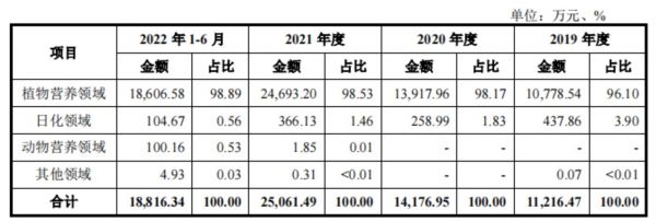 轩凯生物的业务也涉及多个领域,包括植物营养、日化、动物营养、食品等。然而,该公司产品下游应用领域还是集中于植物营养领域。报告期内,该公司产品在植物营养领域形成的主营业务收入比例分别为96.10%、98.17%、98.53%和98.89%。日化领域虽为公司产品第二大应用领域,但是报告期内,该领域的收入占比始终未能超过5%,且总体呈现下降趋势。动物营养领域方面,2022年,该领域收入规模虽有明显增长,但目前比重较低。其他领域主要包括食品领域和水处理领域等,占比还不足1%。